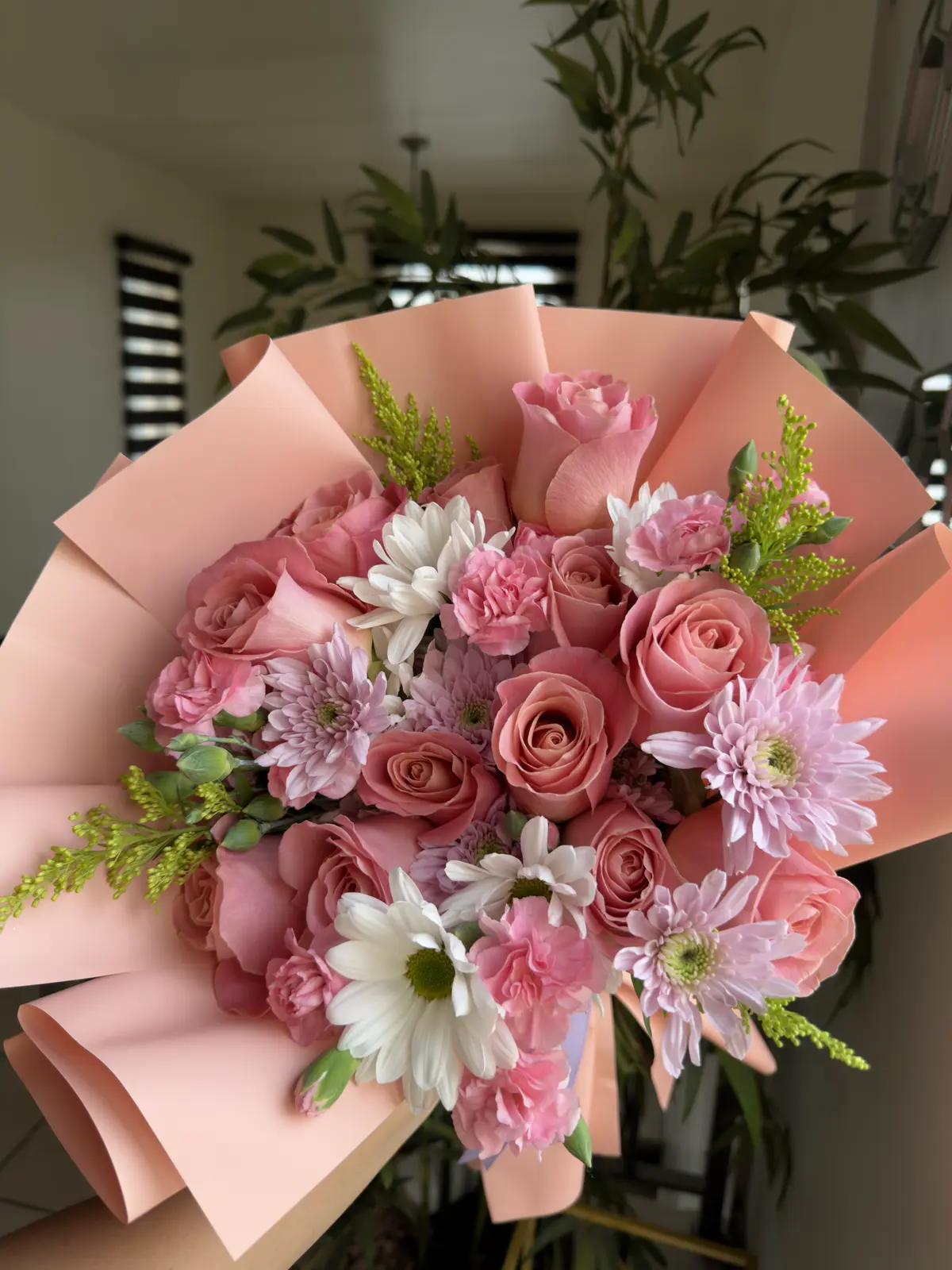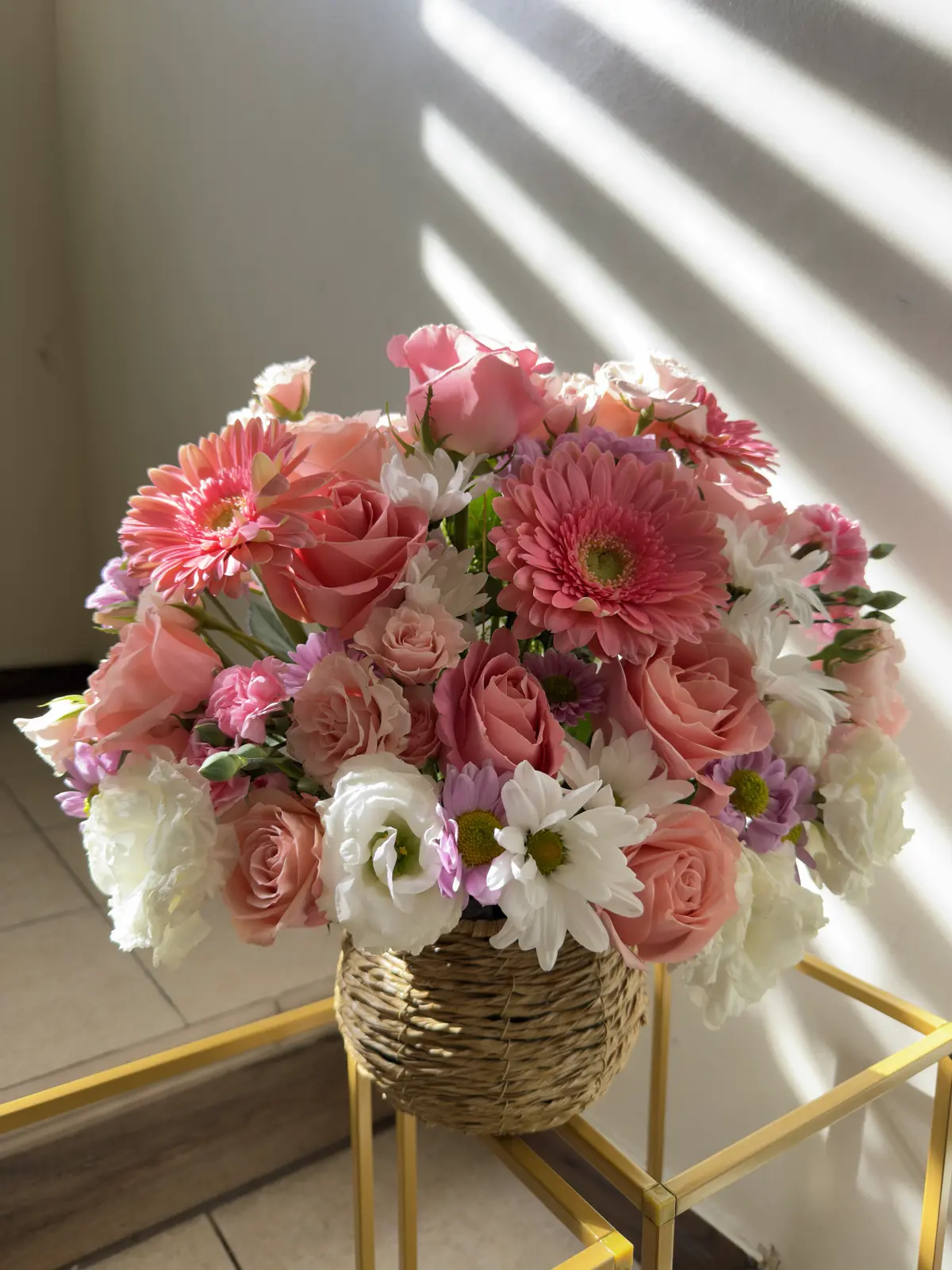 Cada uno de nuestros diseños es creado artesanalmente, seleccionando cada tallo a mano para garantizar que la frescura y el esplendor que ves en nuestras fotos sea exactamente lo que recibes.